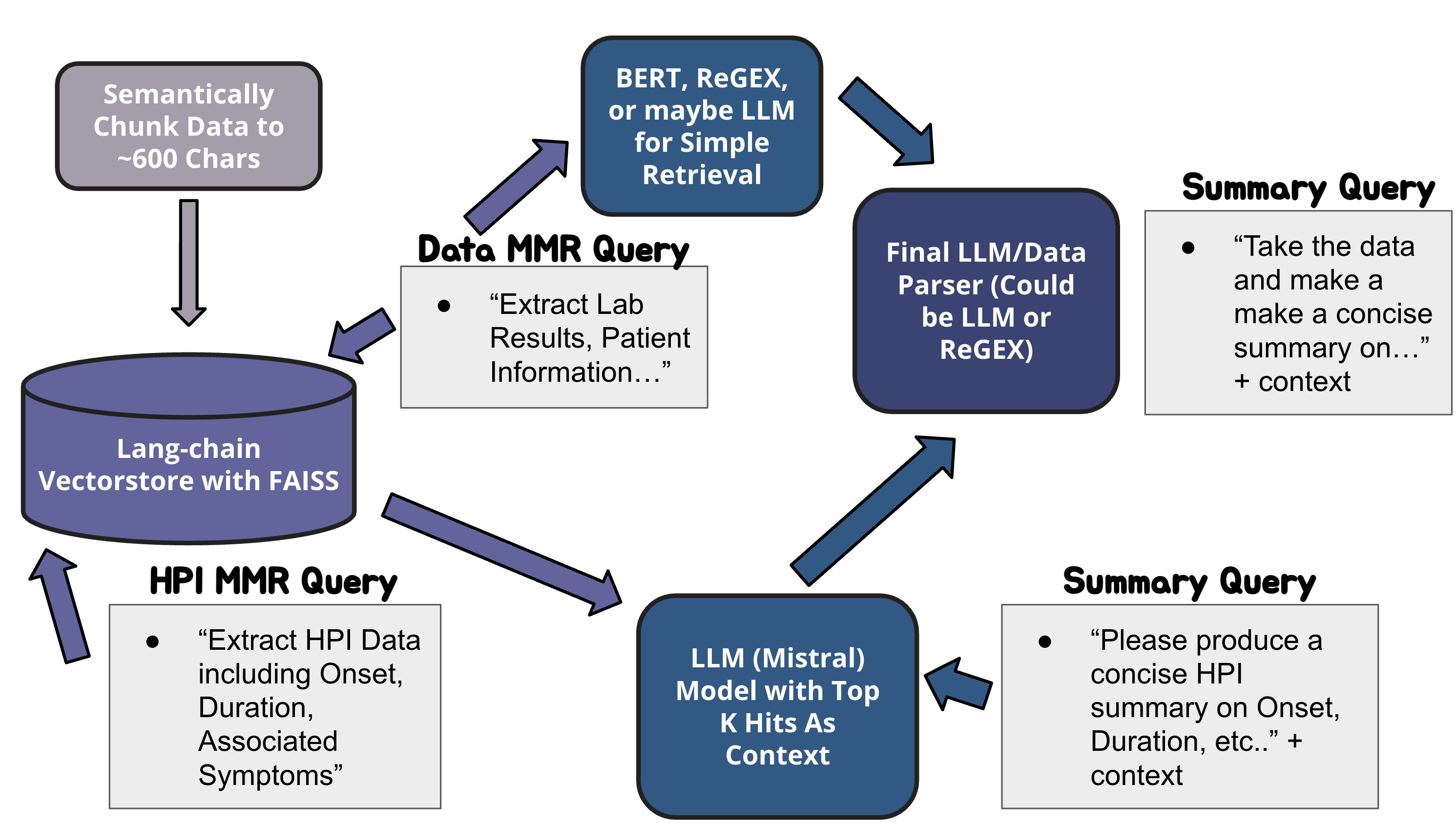 Using vectorstores, maximal marginal relevance, and GPT OSS to summarize patient (MIMIC) notes for clinical settings. Access the jupyter notebook.